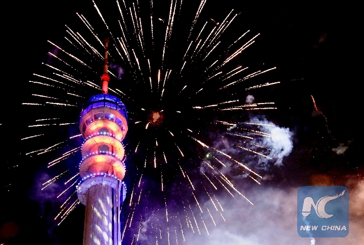 Fireworks light up the sky over Baghdad, capital of Iraq, Jan. 1, 2019. (Xinhua/Khalil Dawood)