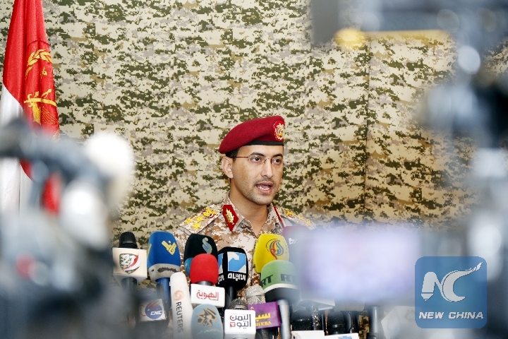 Spokesperson of the Houthi rebels Yahya Sarie speaks during a press conference in Sanaa, Yemen, Dec. 31, 2018. Yemen's rival forces on Monday traded accusations of breaching a UN-brokered ceasefire in flashpoint Red Sea port city of Hodeidah. (Xinhua/Mohammed Mohammed)