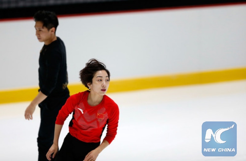 Chinese figure skating pair Sui Wenjing/Han Cong in a training session on Jan. 9. (Xinhua/Wang Lili)