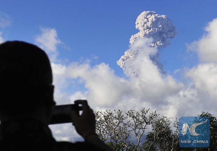 JAKARTA, Jan. 10 (Xinhua) -- Mount Agung volcano on the Indonesian resort island of Bali erupted on Thursday night, spewing column of volcanic ash, Indonesian authorities said.