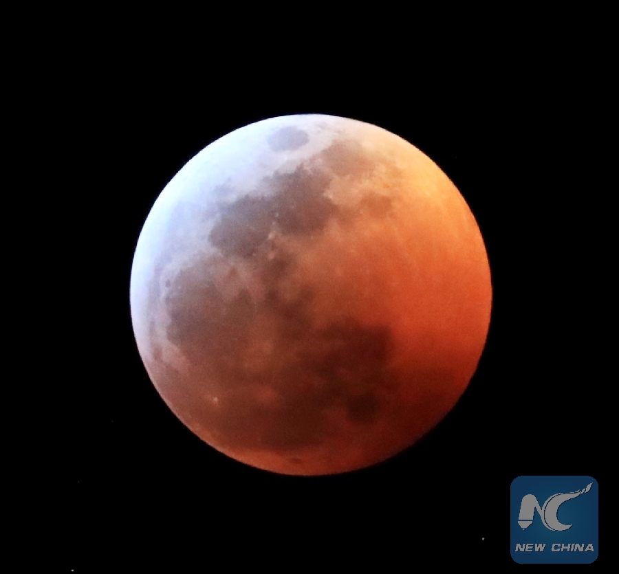At 8:41 p.m. PST (0441 GMT, Monday), the moon was completely inside the umbra, marking the beginning of the total lunar eclipse. The total process took about three hours.