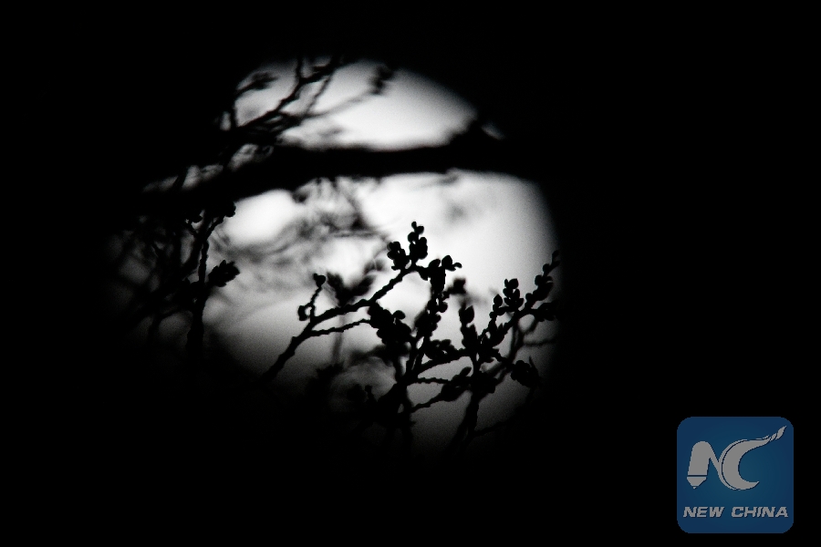 Photo taken on Jan. 20, 2019 shows the supermoon in Los Angeles, the United States. (Xinhua/Li Ying)