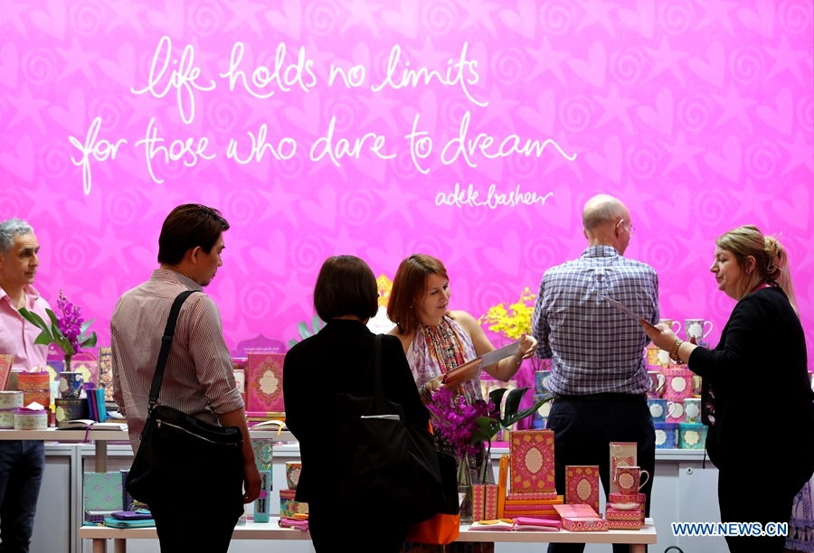 Visitors and exhibitors are seen during the Hong Kong Gifts & Premium Fair 2019 in south China's Hong Kong, April 27, 2019. Over 4,000 exhibitors attend the fair, which kicked off here on Saturday and will last till April 30. (Xinhua/Li Gang)