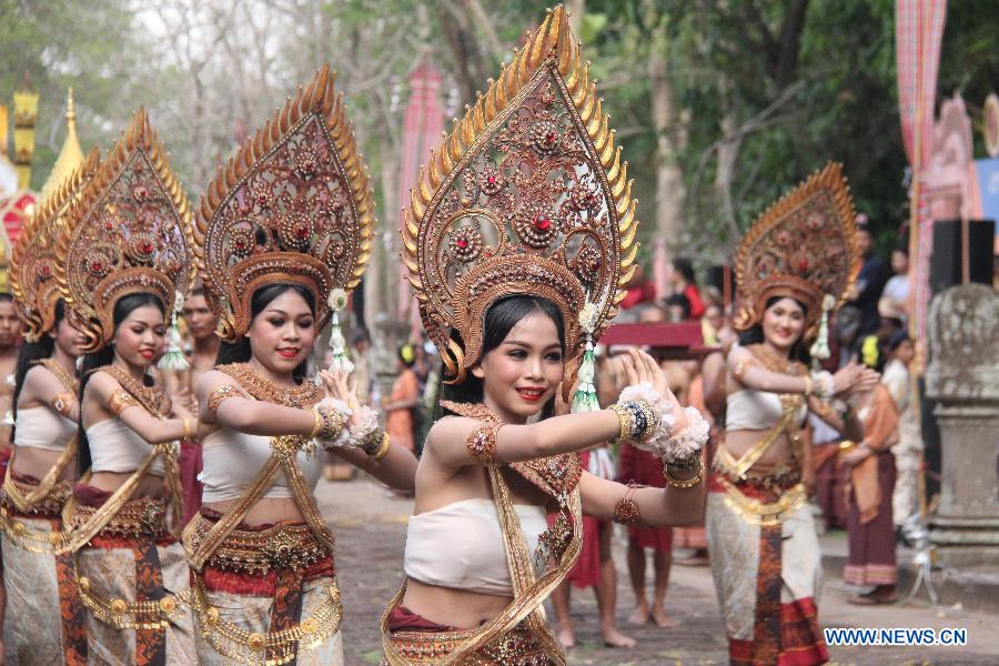 Performers dance on the parade Kheun Khao Phanom Rung, or "up into the Phanom Rung mountain", in Buriram province, northeastern Thailand, April 6, 2019. China will hold the Conference on Dialogue of Asian Civilizations starting from May 15. Under the theme of "exchanges and mutual learning among Asian civilizations and a community with a shared future," the conference includes an opening ceremony and sub-forums. (Xinhua/Yang Zhou)