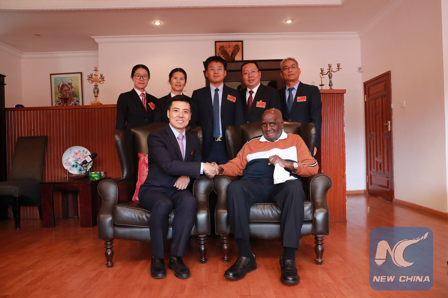 LUSAKA, June 15 (Xinhua) -- Members of Chinese medical teams in Zambia on Friday paid a courtesy call on Zambia's former President Kenneth Kaunda to express their gratitude for his role in building the relationship between the two countries.