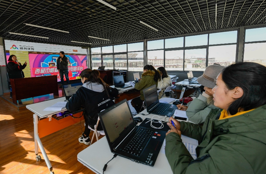 An e-commerce training course for poverty alleviation is held in Lhasa, capital of southwest China's Tibet Autonomous Region, Jan. 11, 2018. (Xinhua/Liu Dongjun)