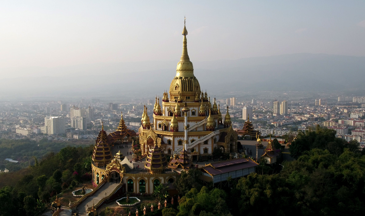 Photo shows the Menghuan Grand Golden Pagoda at Leiyarang Mountain in Mangshi City, capital of Dehong Dai and Jingpo Autonomous Prefecture in southwest China's Yunnan Province. (Xinhua/Lin Yiguang)