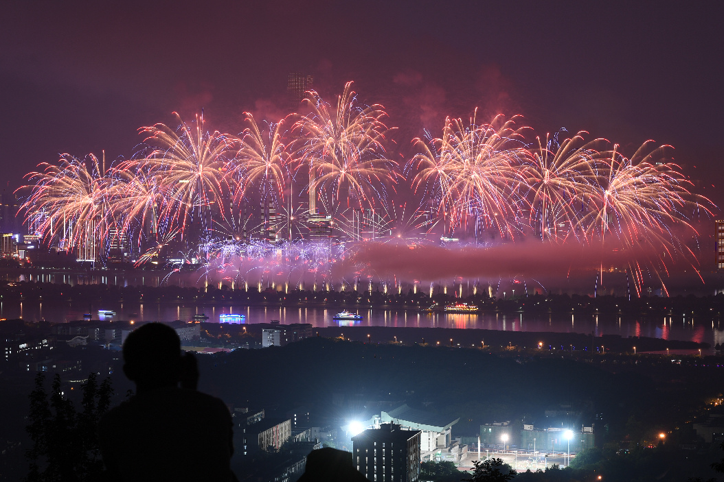 Photo taken on June 26, 2019 shows fireworks marking the forthcoming China-African Economic and Trade Expo in Changsha, capital of central China's Hunan Province. The first China-African Economic and Trade Expo is to be held from June 27 to 29. (Xinhua/Xue Yuge)