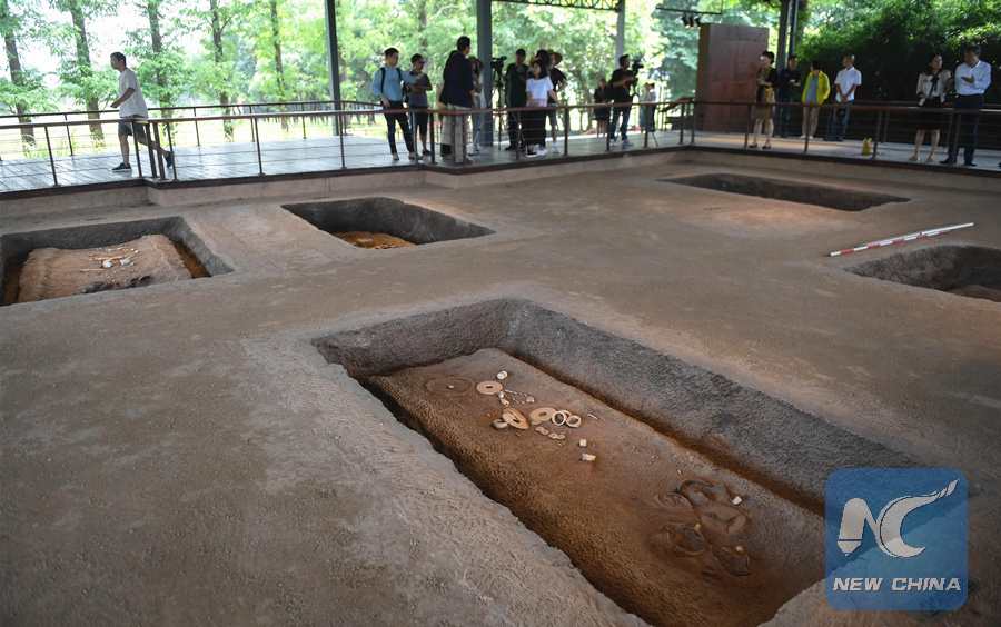 Photo taken on June 23, 2019 shows tombs at Liangzhu relic site in Hangzhou, capital of east China's Zhejiang Province. (Xinhua/Huang Zongzhi)