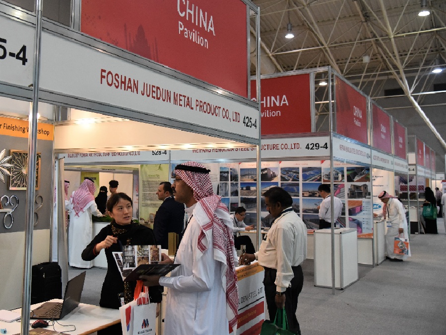People visit China Pavilion at Saudi Build 2018 at the Riyadh International Convention & Exhibition Center in Riyadh, Saudi Arabia, Oct. 22, 2018. (Xinhua/Tu Yifan)