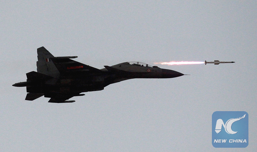 An Indian Air Force Su-30MKI aircraft fires an air-to-air missile during an exercise at Pokhran in the state of Rajasthan, India, March 18, 2016. (REUTERS)