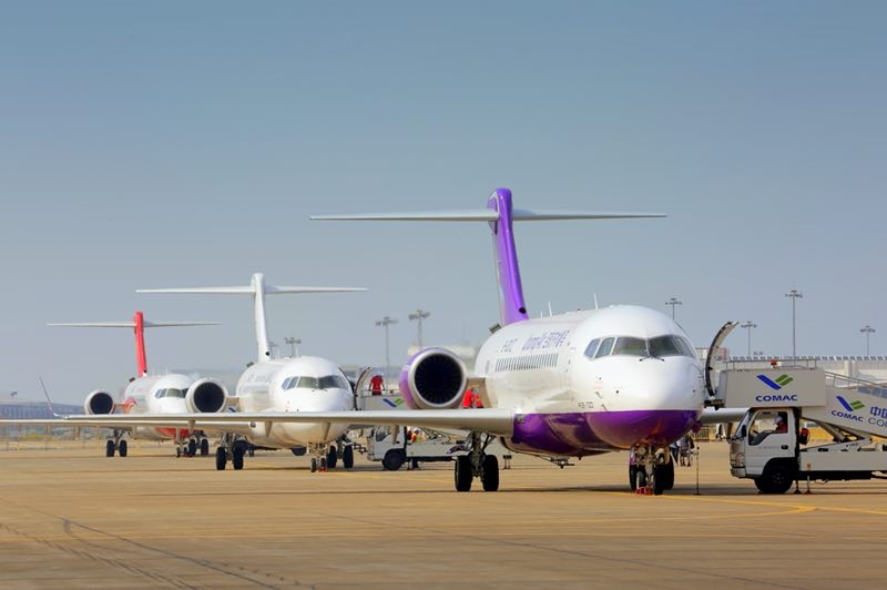 Fleet of China's domestically-developed ARJ21 regional aircraft (photo provided by the COMAC)