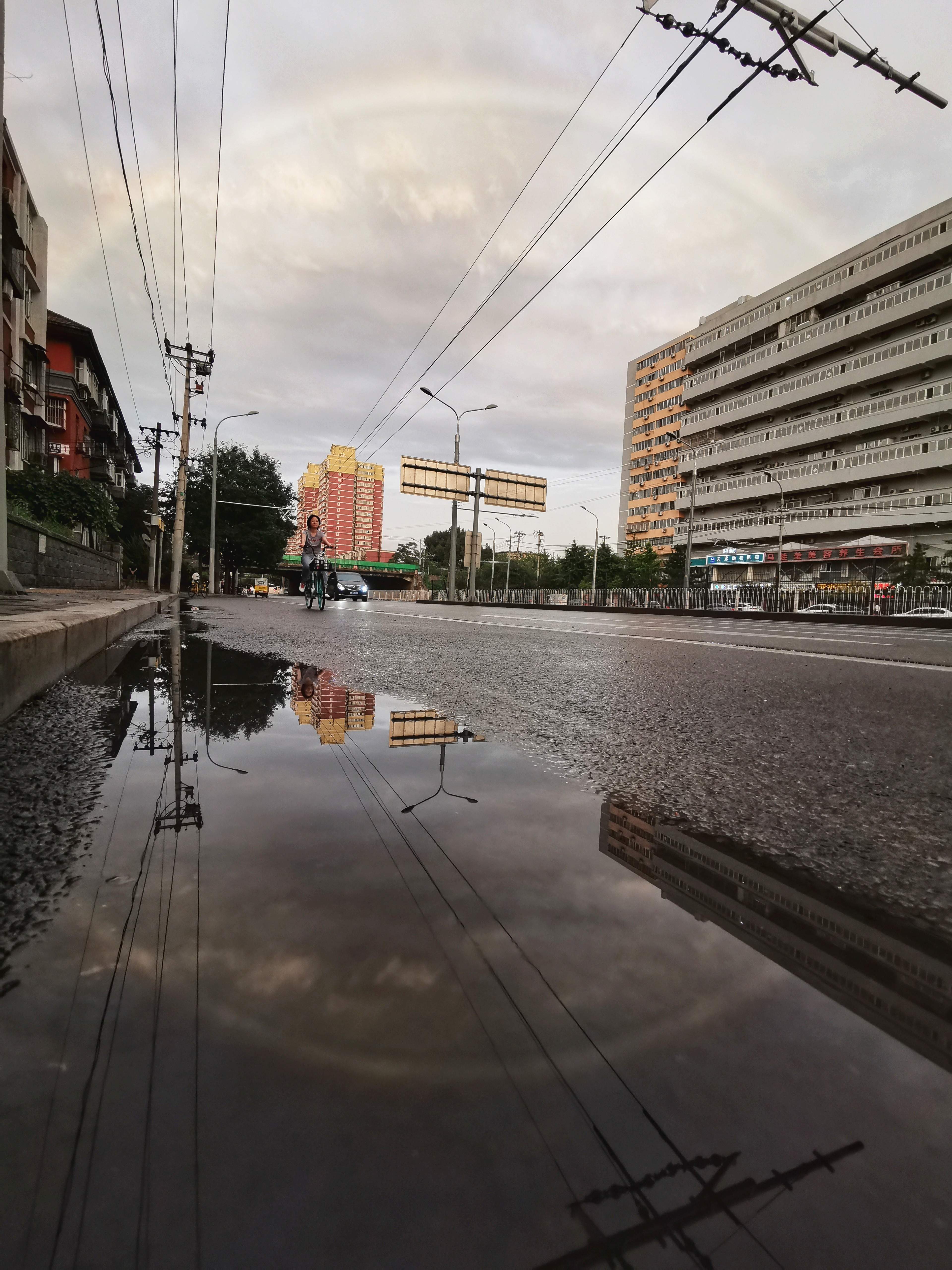 Mobile photo shows a rainbow after rain on Chaoyang Road in Beijing, capital of China, July 29, 2019. (Xinhua/Ju Huanzong)