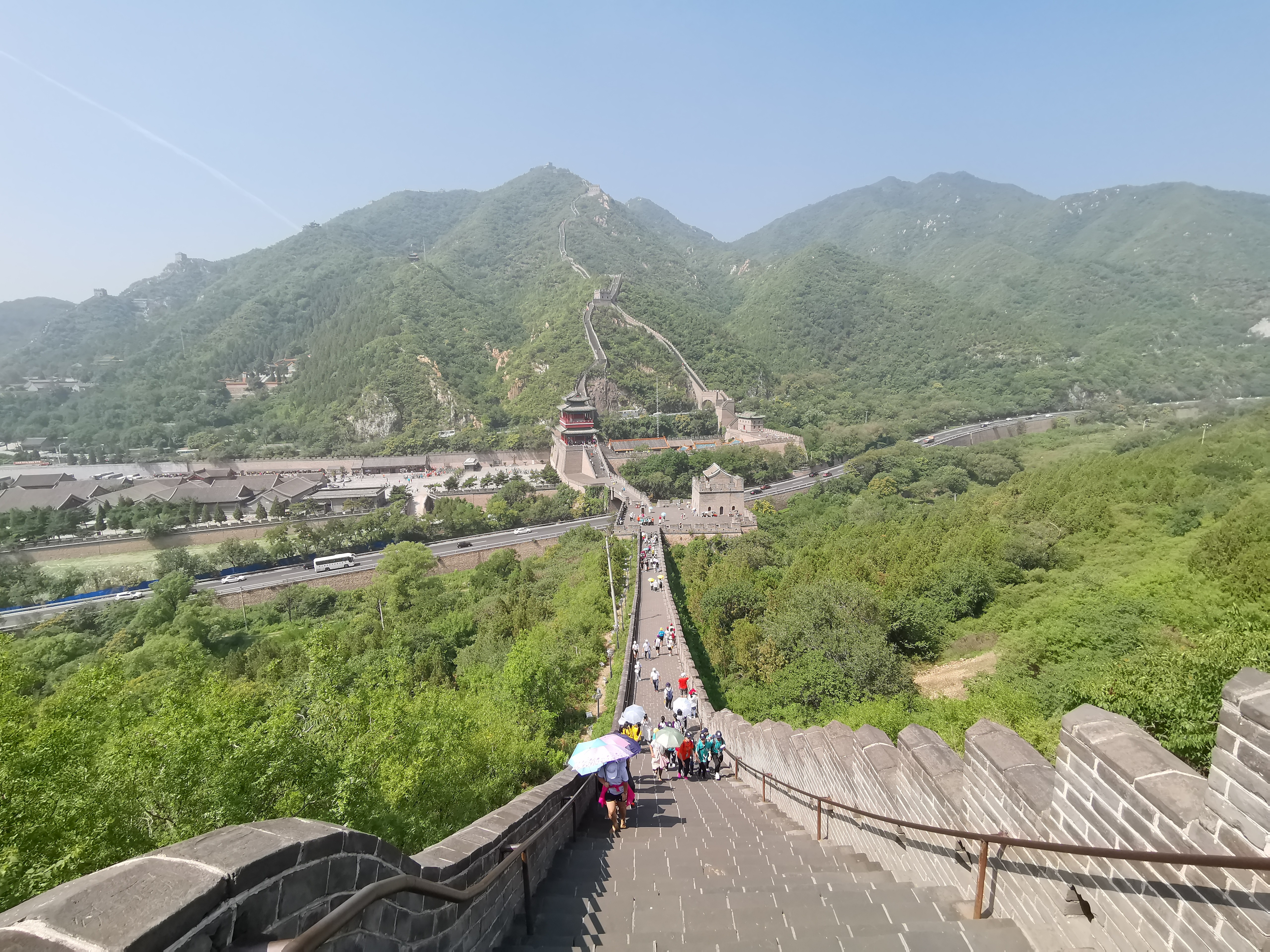 Mobile photo shows people visiting Juyongguan section of the Great Wall in Beijing, capital of China, July 21, 2019. (Xinhua/Ju Huanzong)