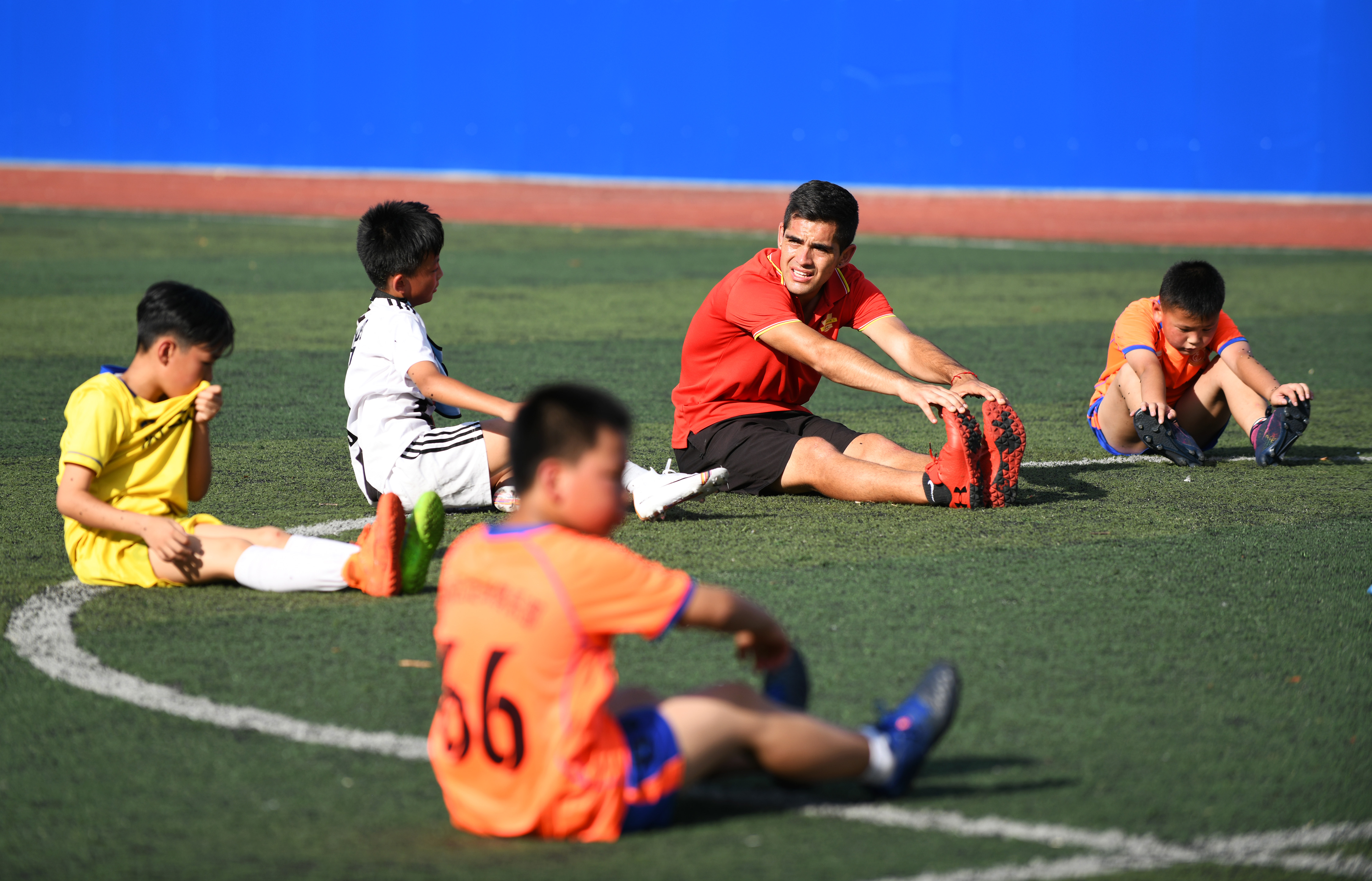 Kids in a youth club in Kaili, a mountainous region in southwest China's Guizhou province, relax after training with a Chilean coach on July 27, 2019. (Xinhua/Yang Wenbin)
