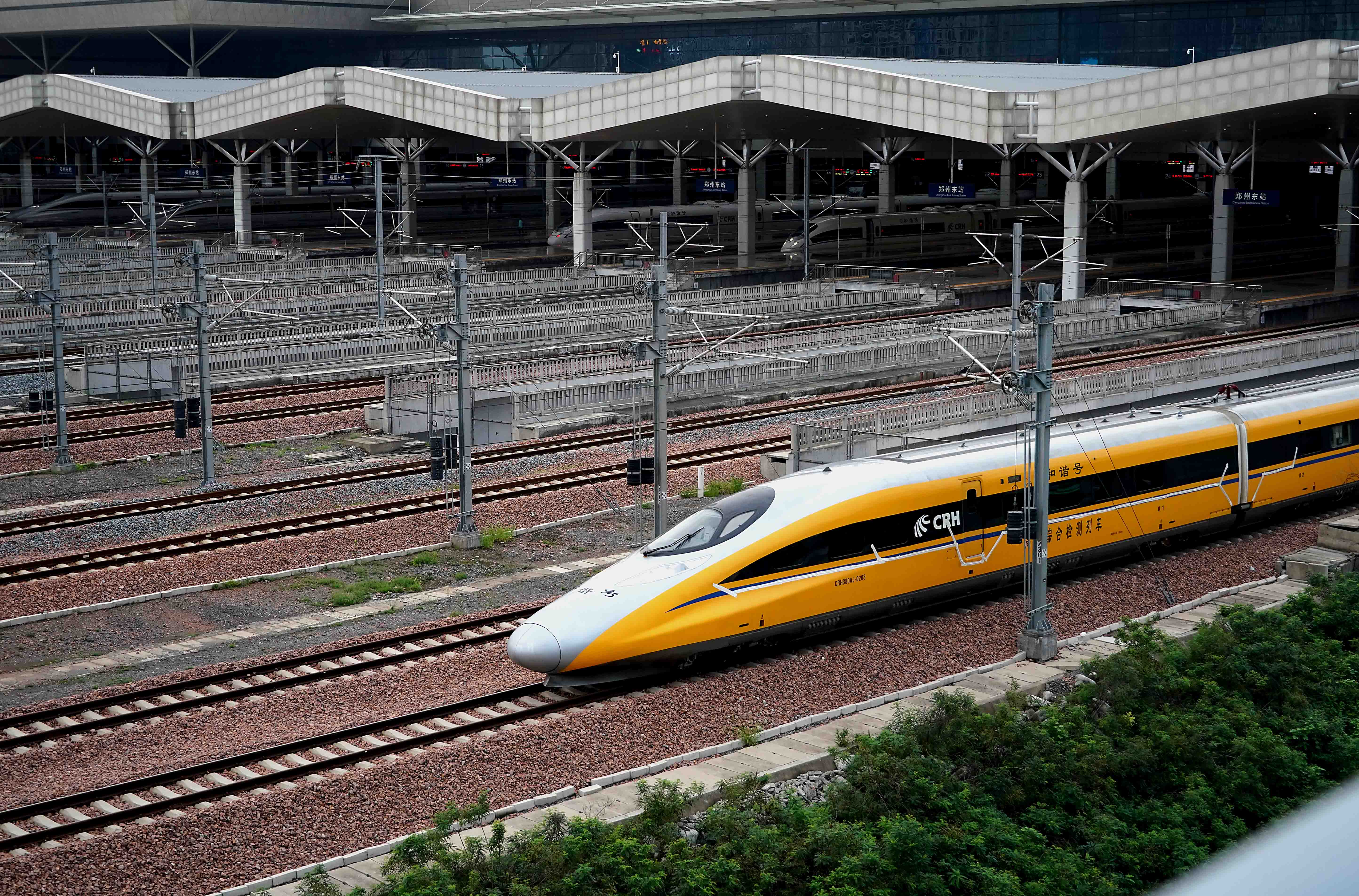 A comprehensive inspection train is seen at Zhengzhou East Railway Station in Zhengzhou, central China's Henan Province, Aug. 13, 2019. (Xinhua/Li An)