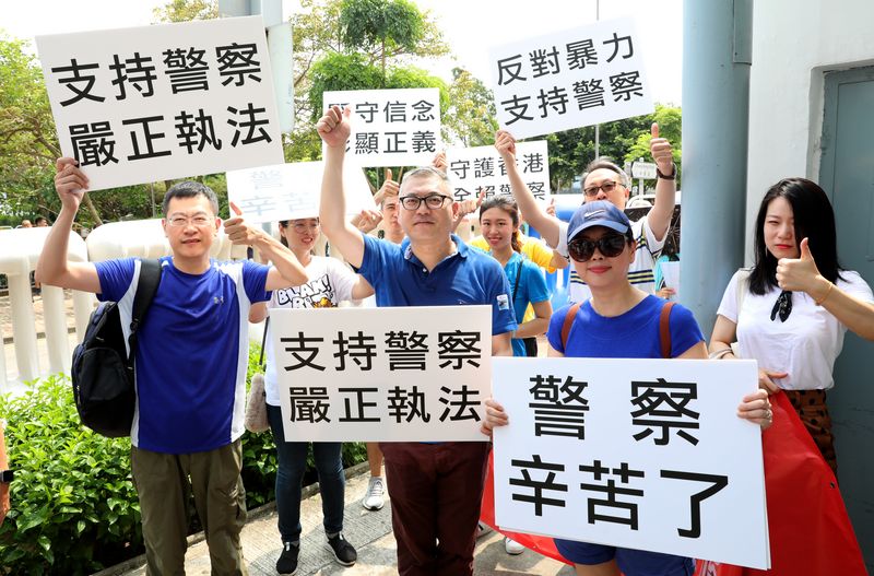 People visit Central Police Station to express their support for the police force in Hong Kong, south China, Aug. 10, 2019. (Xinhua/Wu Xiaochu)