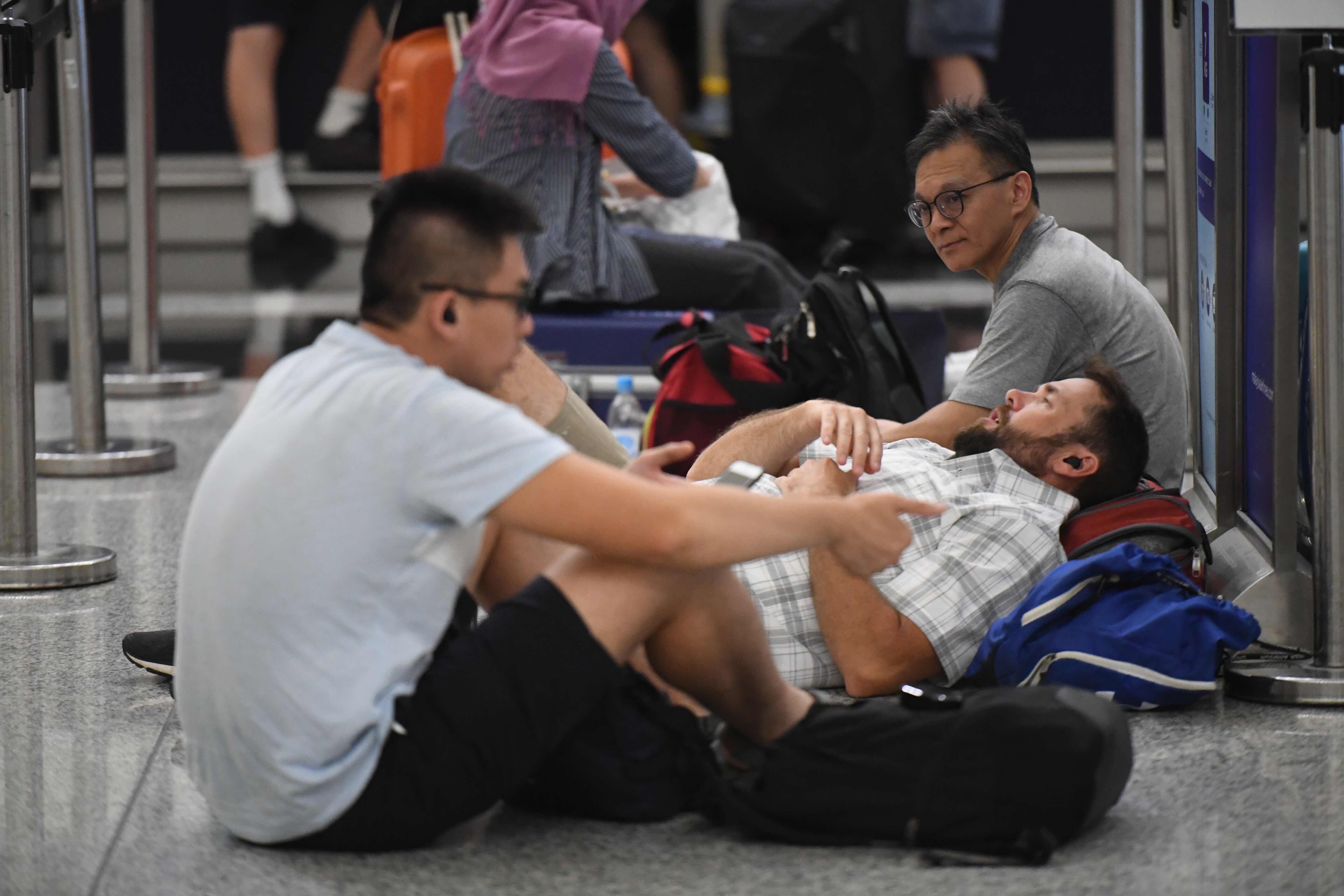 Stranded passengers are seen at Hong Kong International Airport in Hong Kong, south China, Aug. 12, 2019. (Xinhua/Lui Siu Wai)