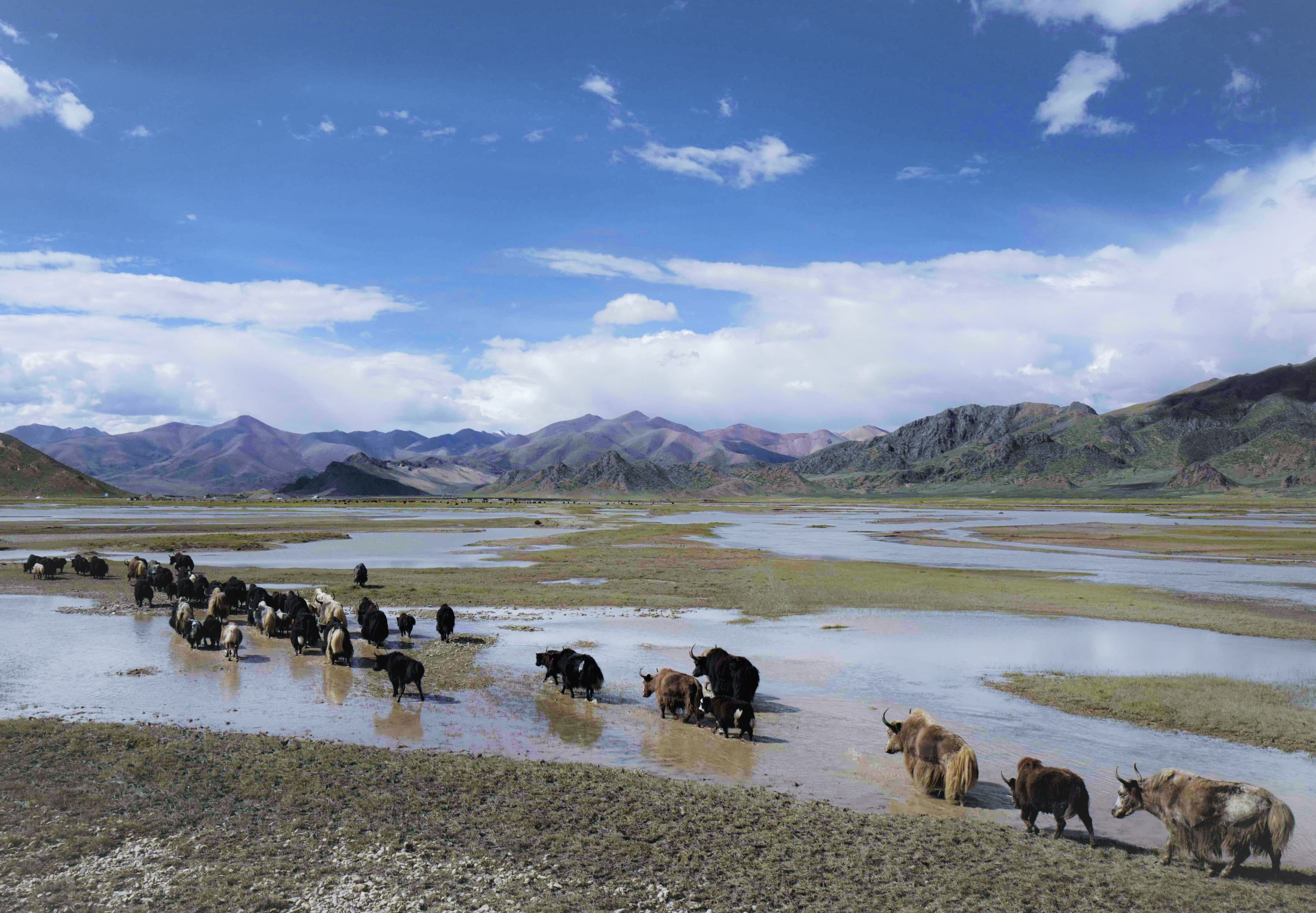 Yaks on a wetland in northern Tibet Autonomous Region, southwest China. (Xinhua/Purbu Zhaxi)