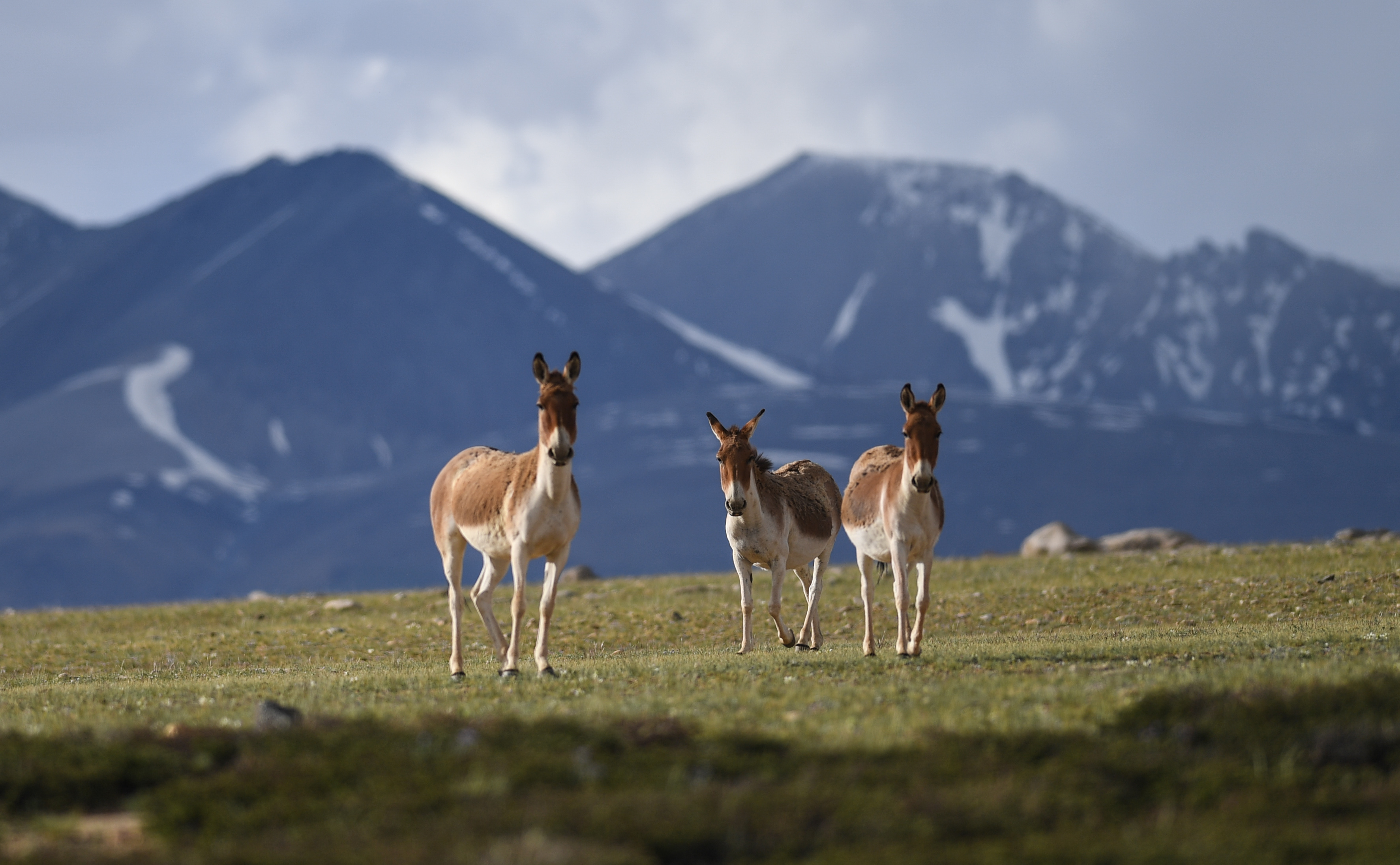 Tibetan wild donkeys on a pasture in Zanda County, southwest China's Tibet Autonomous Region. (Xinhua/Jigme Dorje)