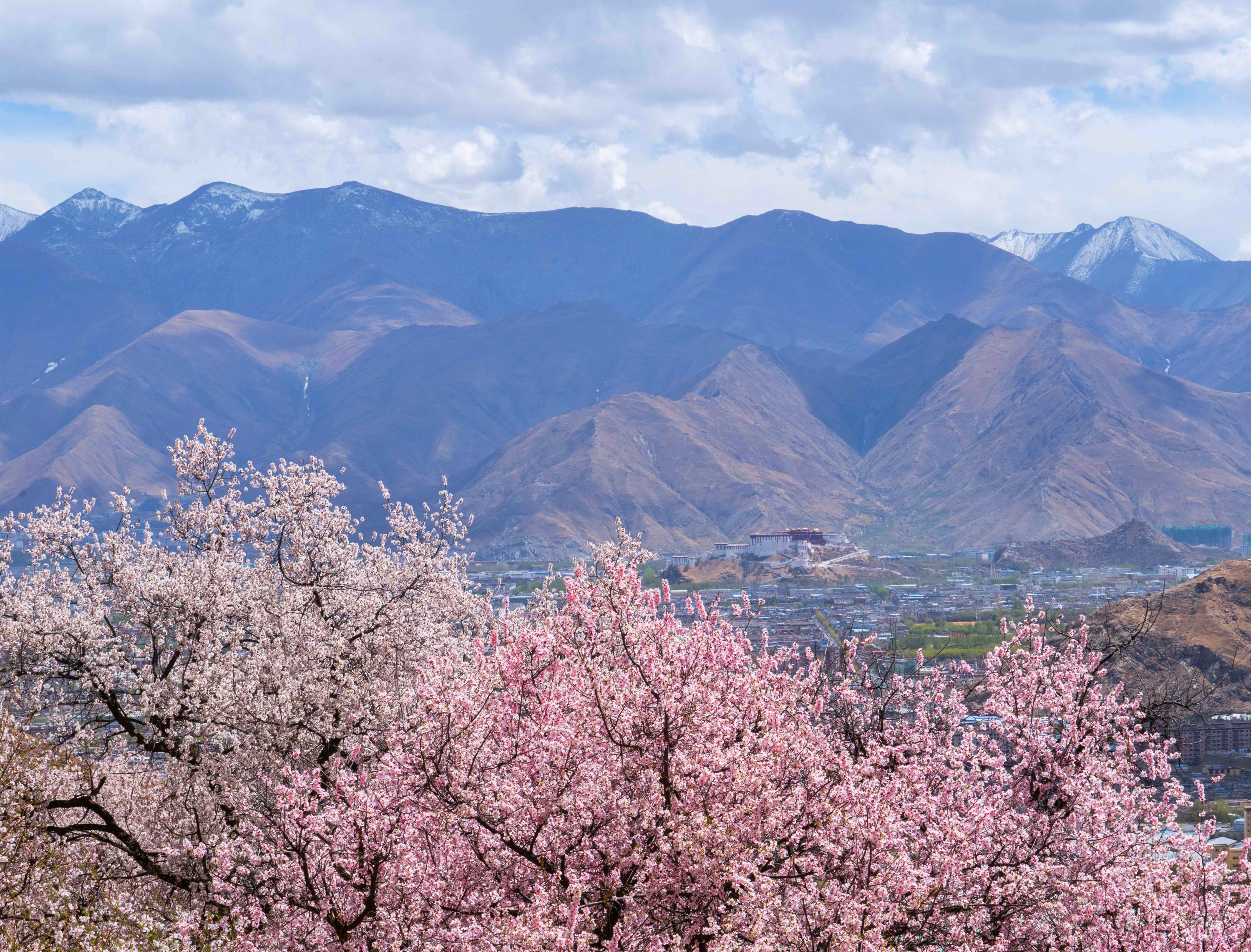 Peach flowers in suburb of Lhasa, southwest China's Tibet Autonomous Region. (Xinhua/Purbu Zhaxi)