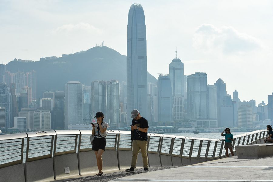 Tourists visit the Tsim Sha Tsui of Hong Kong, south China, on Aug. 20, 2019. As protracted violence continue to roil Hong Kong, its tourism industry has turned into a chilly winter due to the unrest. (Xinhua/Liu Dawei)