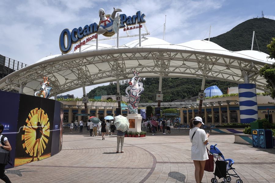 Fewer tourists appear at the entrance of the Ocean Park in Hong Kong, south China on Aug. 20, 2019. In the June-July period, average earnings for tourism workers plunges by 74 percent, while the number of tours in Hong Kong also falls 74 percent on average. (Xinhua/Mao Siqian)