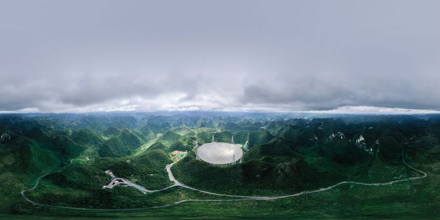 Aerial photo taken on Aug. 27, 2019 shows China's Five-hundred-meter Aperture Spherical radio Telescope (FAST) in southwest China's Guizhou Province. (Xinhua/Ou Dongqu)