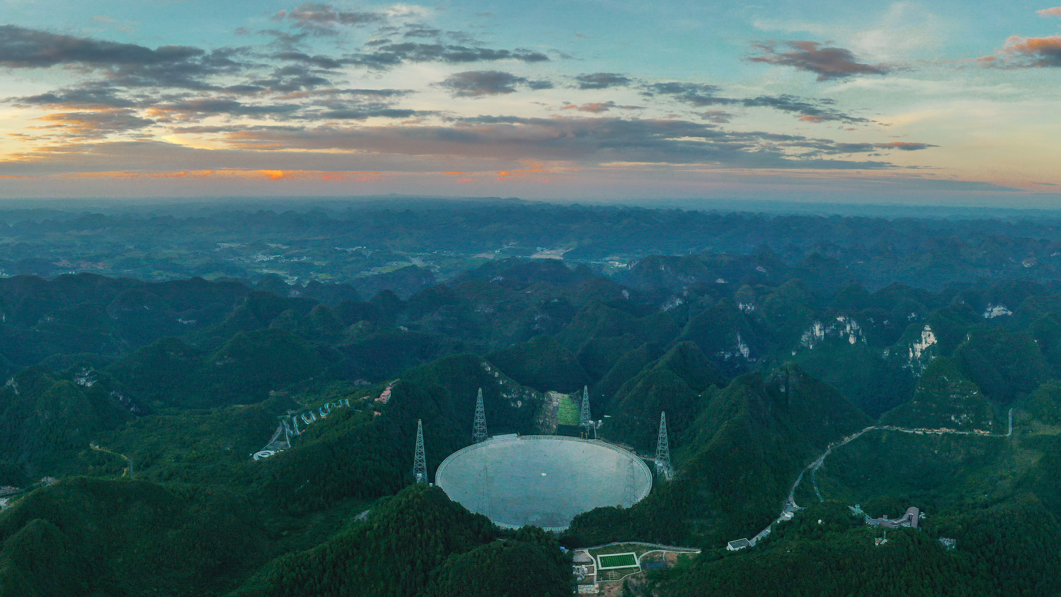 China's Five-hundred-meter Aperture Spherical radio Telescope (FAST) in southwest China's Guizhou Province,the world's largest single-dish radio telescope, will greet the third anniversary of operation that began in September 2016.(Xinhua/Ou Dongqu)