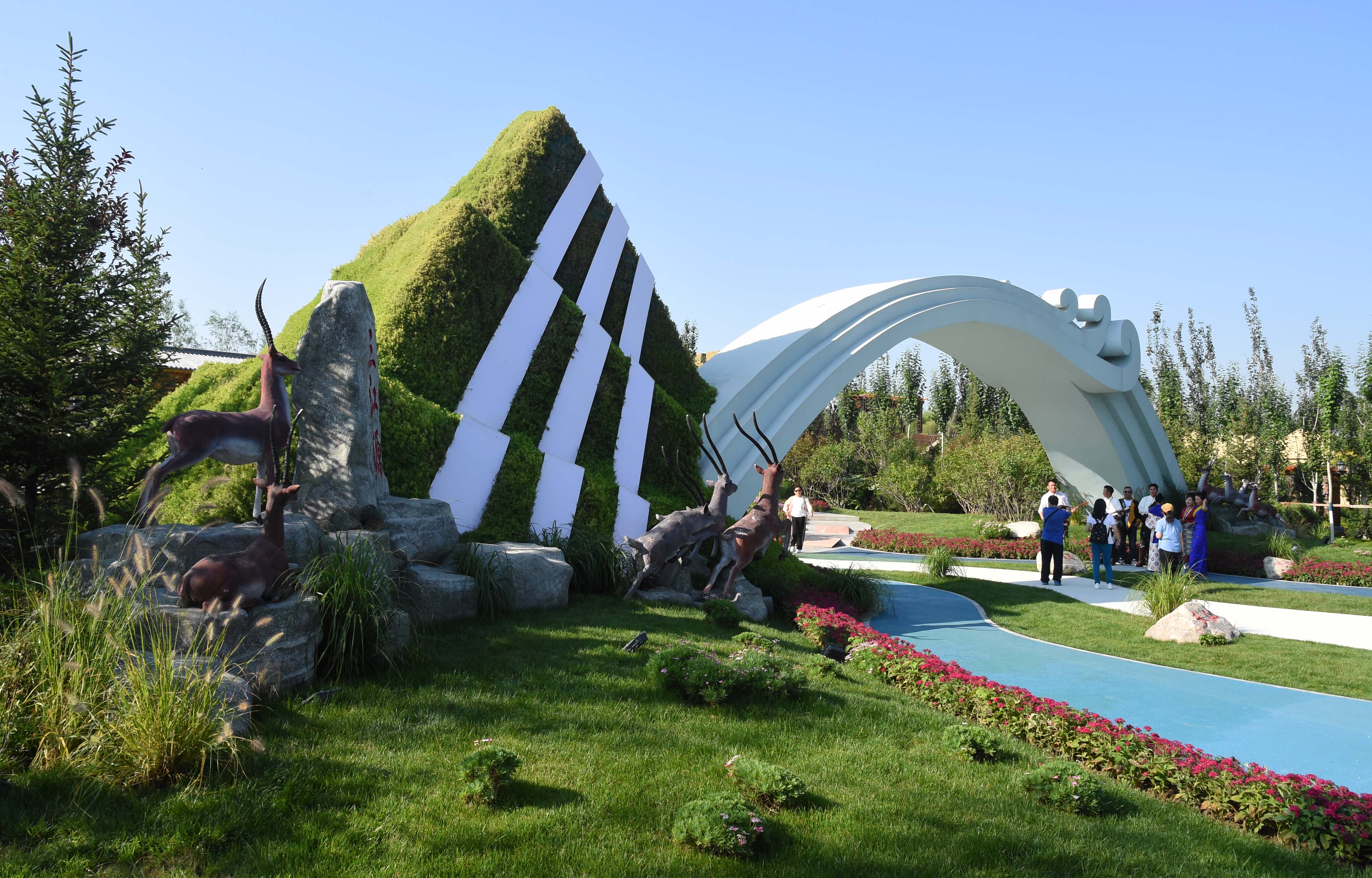 People visit the Qinghai Garden at the Beijing International Horticultural Exhibition in Beijing. (Xinhua/Ren Chao)