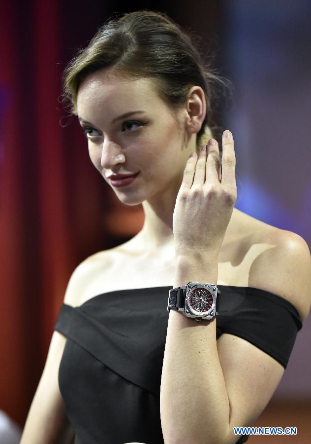 A model shows a watch during the 38th Hong Kong Watch and Clock Fair at Hong Kong Convention and Exhibition Center in south China's Hong Kong, Sept. 3, 2019. (Xinhua/Lo Ping Fai)