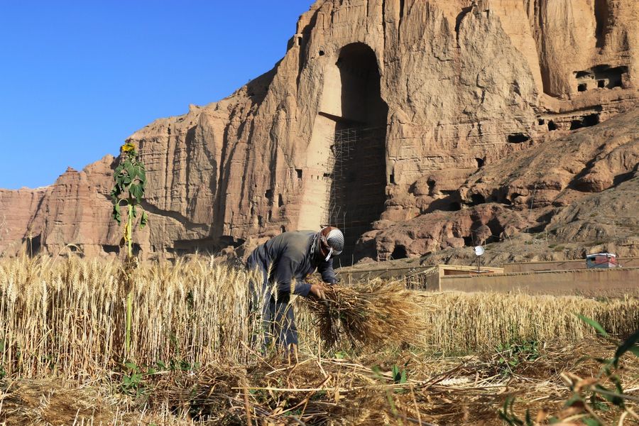 An Afghan farmer harvests wheat on his farmland in Bamyan province, Afghanistan, on Aug. 10, 2016. (Xinhua/Latif Azimi)