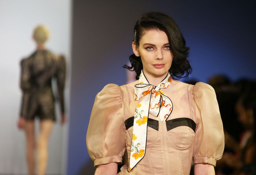 This season's vibrant and lustrous looks were inspired by the luxurious design of western aristocrats' clothing during the 19th century, in particular the tailoring of classical suits and skirts, so as to highlight body shapes and feminine charm, according to a statement of the brand.