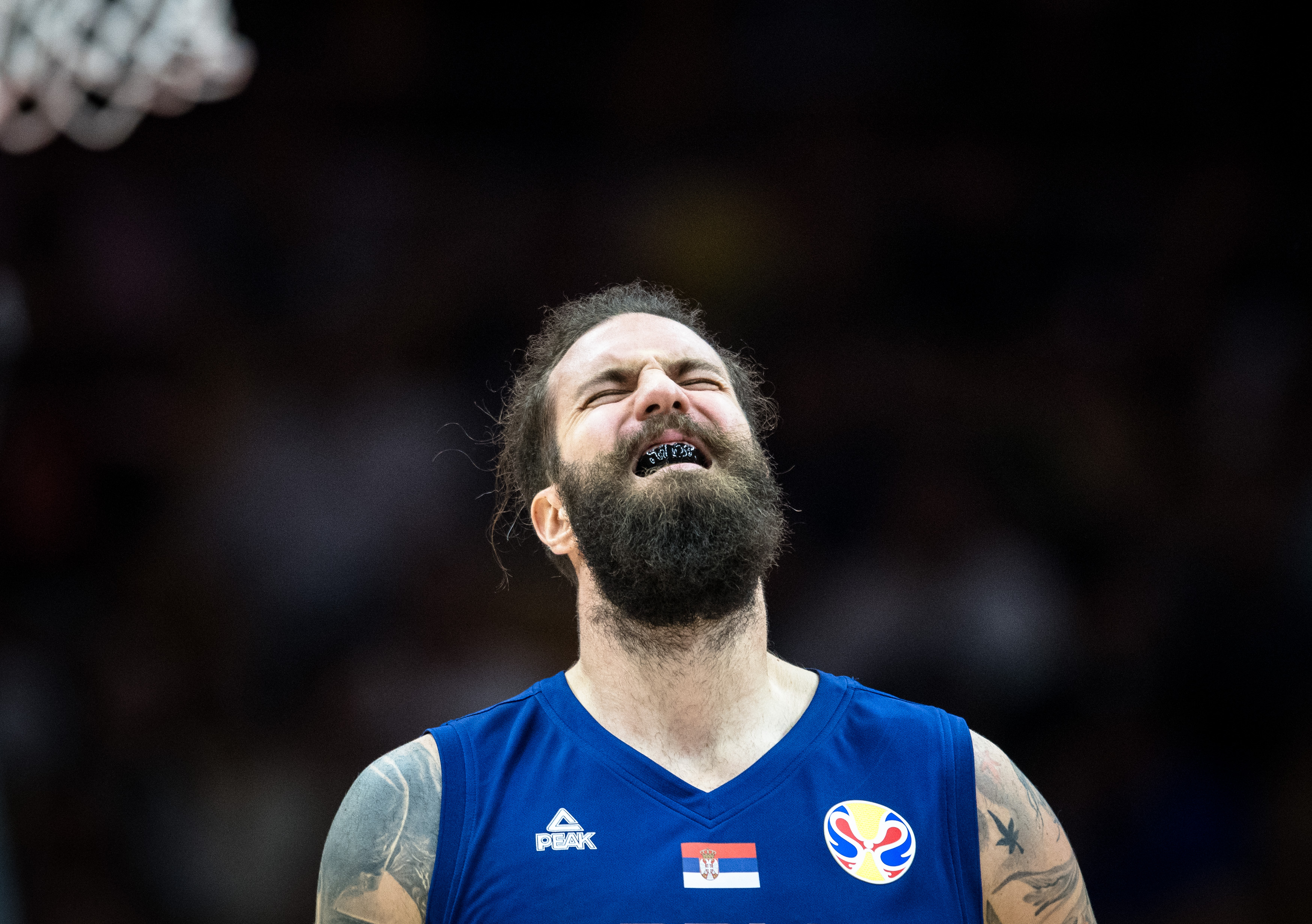 Miroslav Raduljica of Serbia reacts during the group J match between Spain and Serbia at the 2019 FIBA World Cup in Wuhan, capital of central China's Hubei Province, Sept. 8, 2019. (Xinhua/Xiao Yijiu)