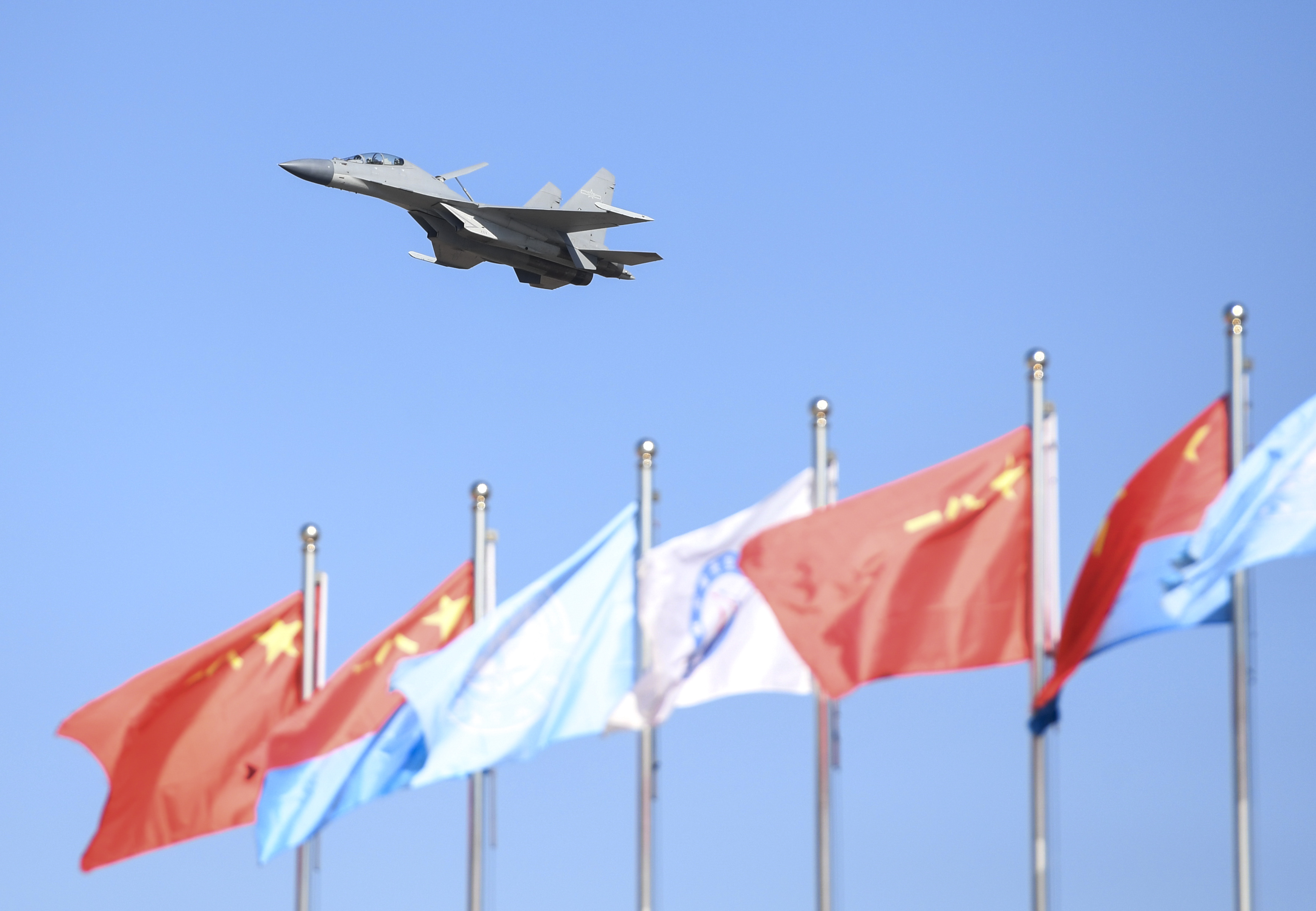 A J-16 fighter makes a flight demonstration during an activity celebrating the 70th founding anniversary of the Chinese People's Liberation Army (PLA) air force in Changchun, capital of northeast China's Jilin Province, Oct. 17, 2019. (Xinhua/Zhang Nan)