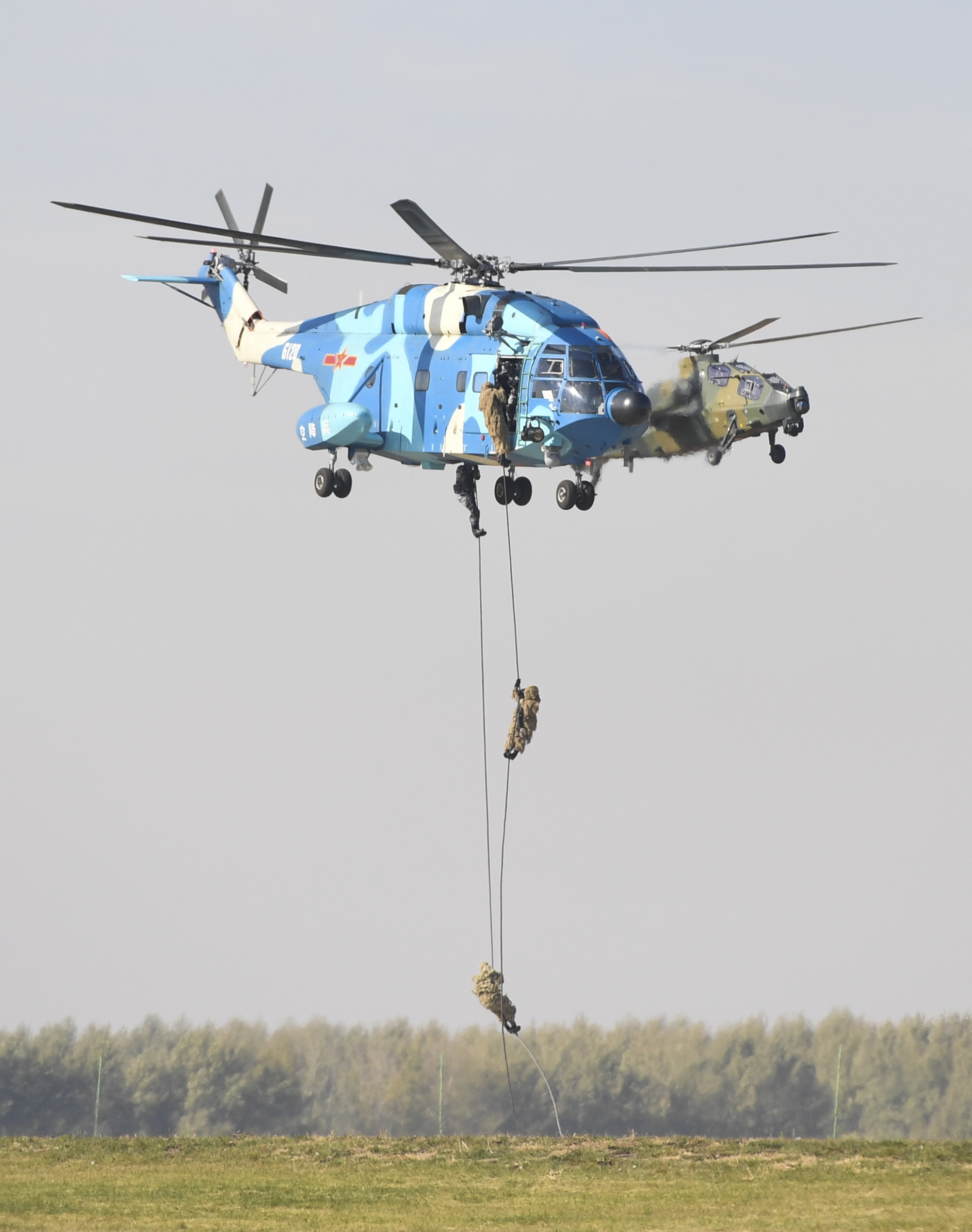 Airborne force makes a demonstration during an activity celebrating the 70th founding anniversary of the Chinese People's Liberation Army (PLA) air force in Changchun, capital of northeast China's Jilin Province, Oct. 17, 2019. (Xinhua/Zhang Nan)