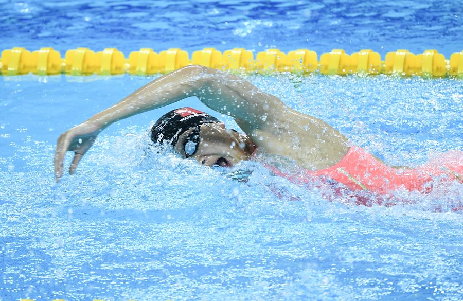 China reaped heavily in the swimming pool, collecting a total of six golds, with Wang Jianjiahe triumphing in women's 400m freestyle with a event-record time of four minutes 4.42 seconds. Wuhan native Zhang Yuhan finished second in front of buzzing home crowd followed by Anna Egorova of Russia.