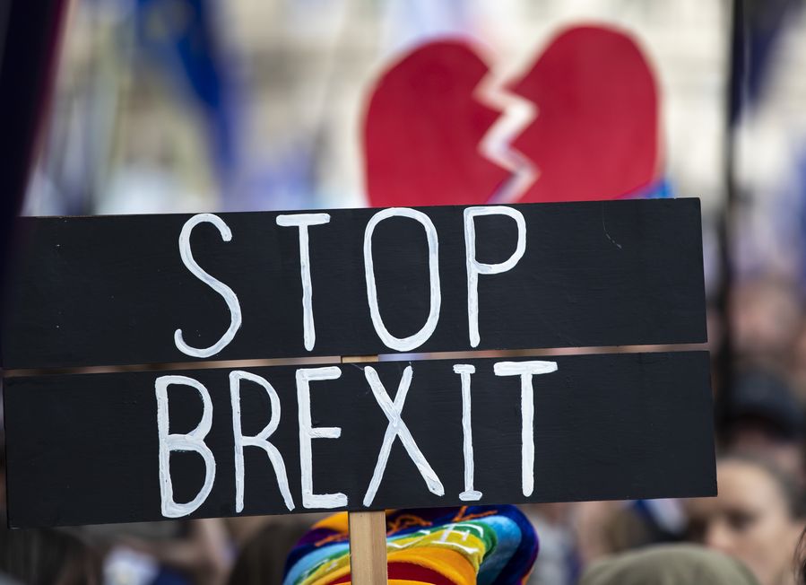 A placard is seen during the "Together for the Final Say" event at the Parliament Square in London, Britain, on Oct. 19, 2019. (Xinhua/Han Yan)