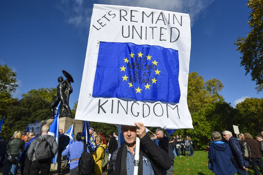 LONDON, Oct. 20 (Xinhua) -- Tens of thousands of people marched in central London demanding a final say on Britain's departure from the European Union.