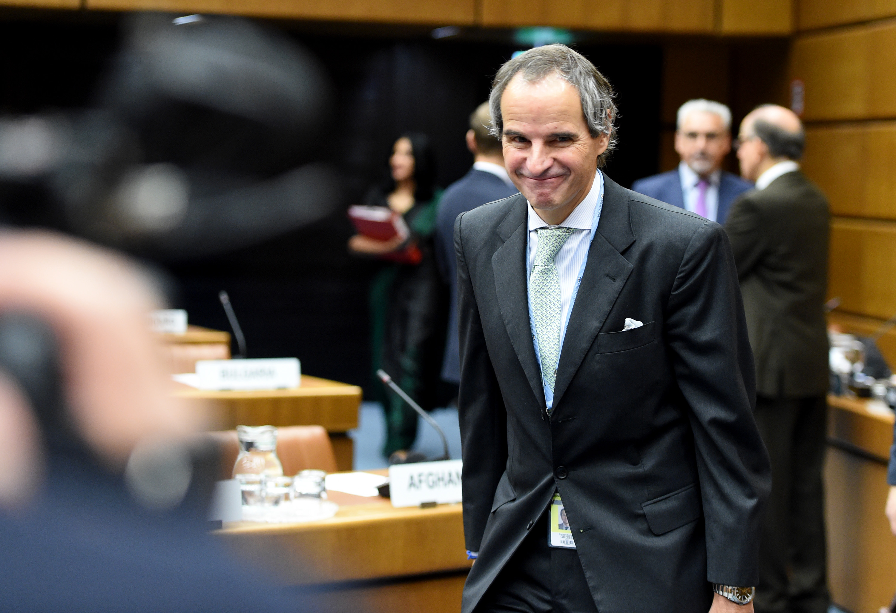 Rafael Mariano Grossi is seen during the Board meeting open to all IAEA member states in Vienna, Austria, Oct 30, 2019. Rafael Mariano Grossi of Argentina received the majority support required in an International Atomic Energy Agency (IAEA) Board of Governors ballot on Tuesday to be appointed the agency's new director general. (Xinhua/Guo Chen)