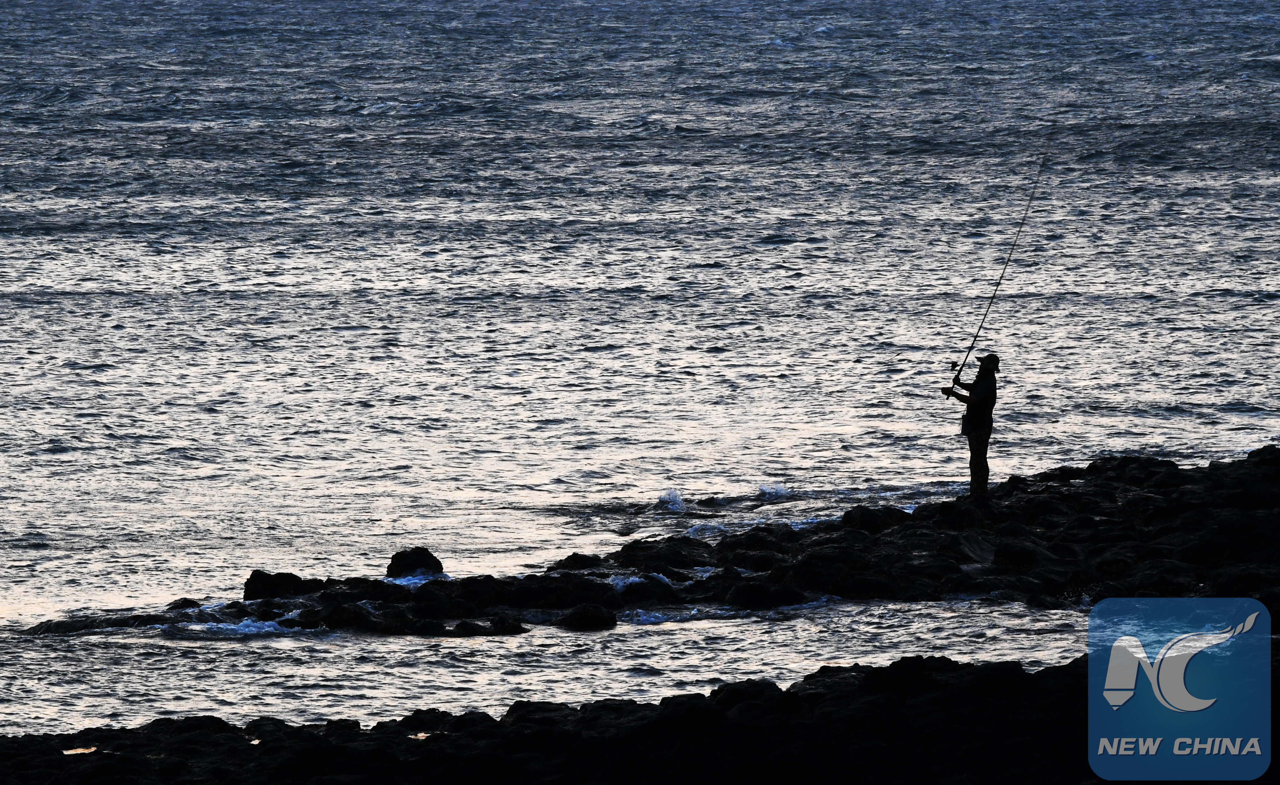 A man fishes by the sea at dusk in Magong, Penghu County of southeast China's Taiwan, Nov. 1, 2019. (Xinhua/Chen Bin)