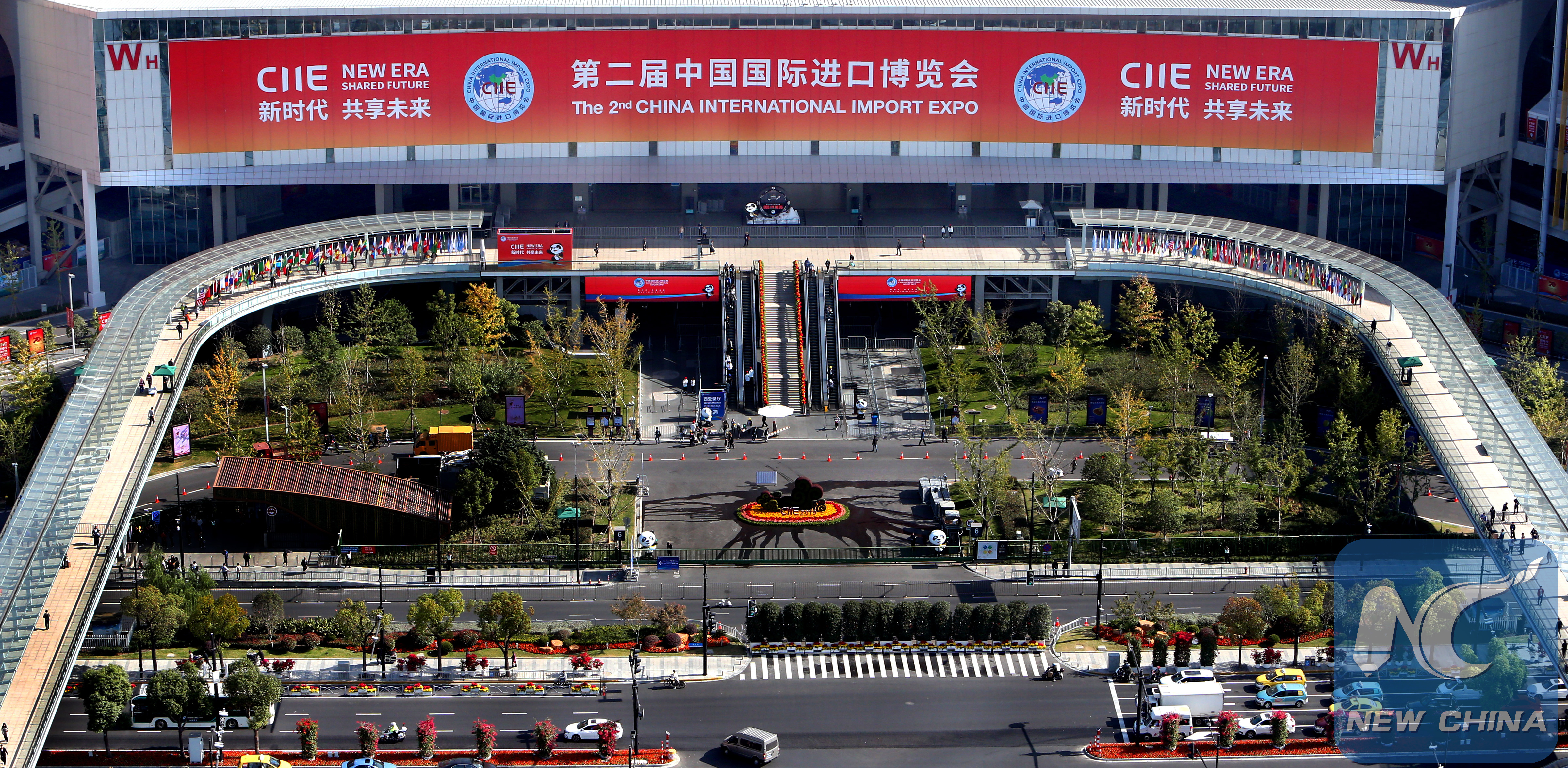 Aerial photo taken on Nov. 1, 2019 shows a view of the National Exhibition and Convention Center (Shanghai) where the second China International Import Expo (CIIE) is to be held, in Shanghai, east China. (Xinhua/Fan Jun)