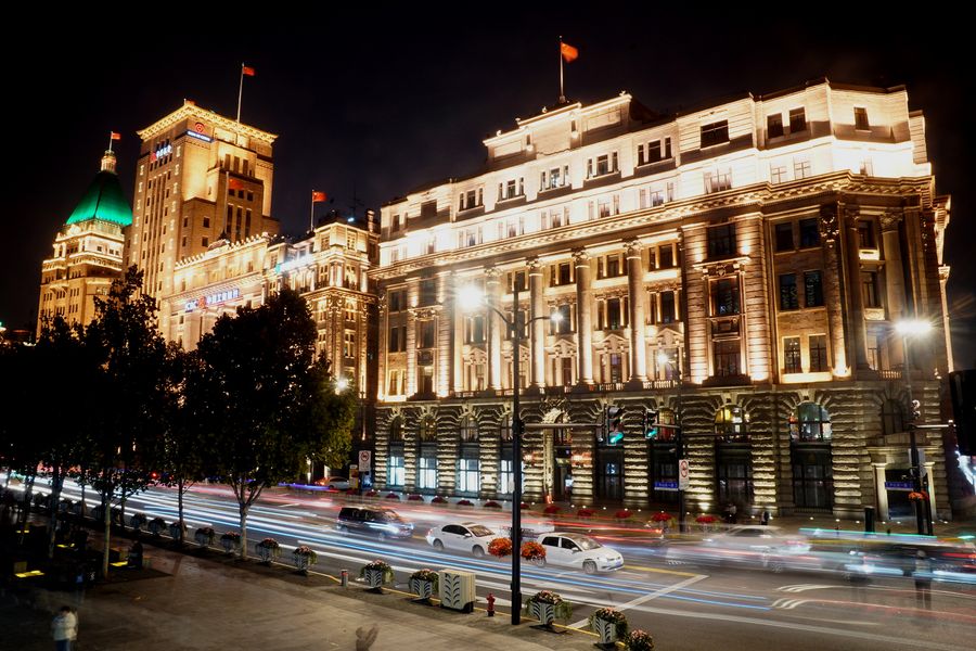 Photo taken on Nov. 2, 2019 shows the night view of the Bund in Shanghai, east China. (Xinhua/Chen Fei)