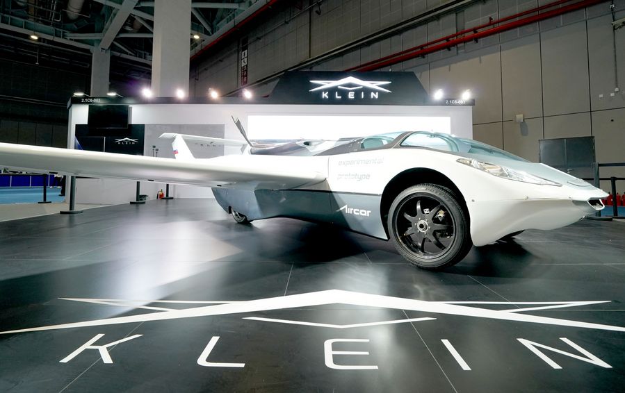Photo taken on Nov. 5, 2019 shows the experimental prototype of Aircar at the Automobile exhibition area during the second China International Import Expo (CIIE) in Shanghai, east China. The second CIIE kicked off Tuesday at the National Exhibition and Convention Center in Shanghai. (Xinhua/Chen Jianli)