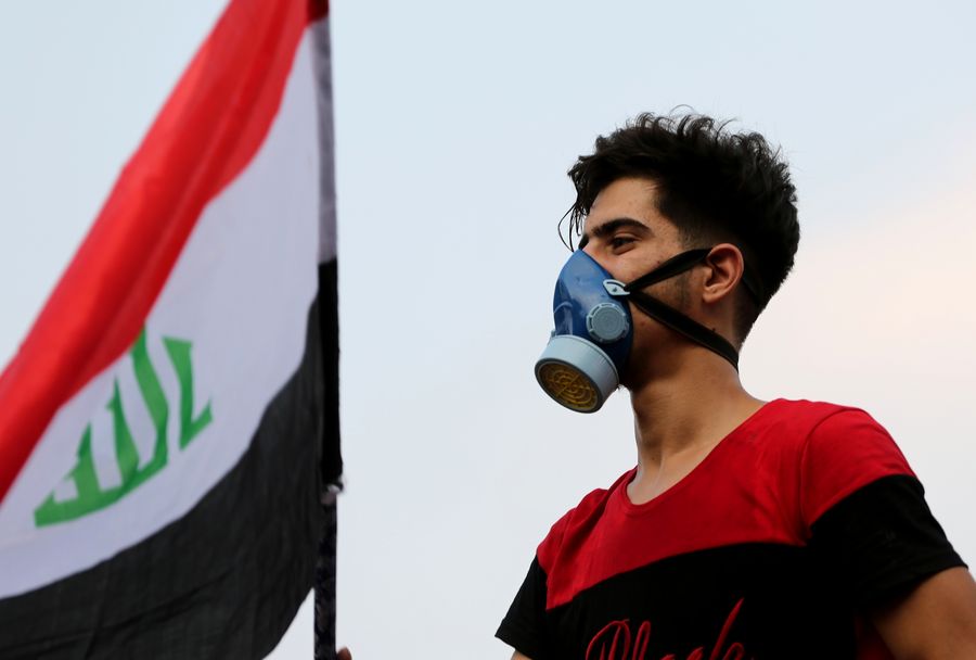 A protester is seen during a protest at Tahrir square in Baghdad, Iraq, on Oct. 29, 2019. (Xinhua/Khalil Dawood)