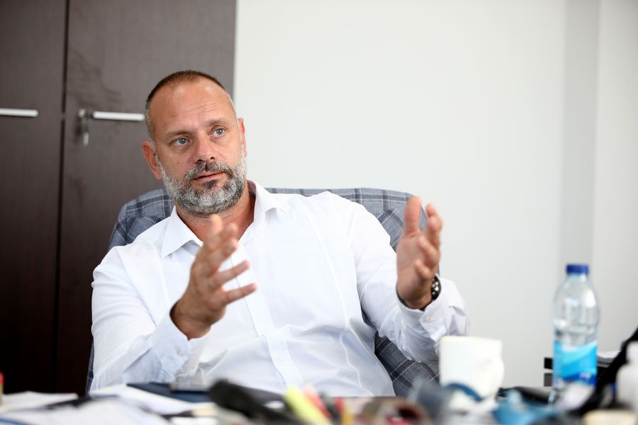 Dusan Panic, mayor of Stanari municipality, is interviewed by Xinhua in Stanari, northern Bosnia and Herzegovina (BiH), Oct. 24, 2019. (Photo by Nedim Grabovica/Xinhua)