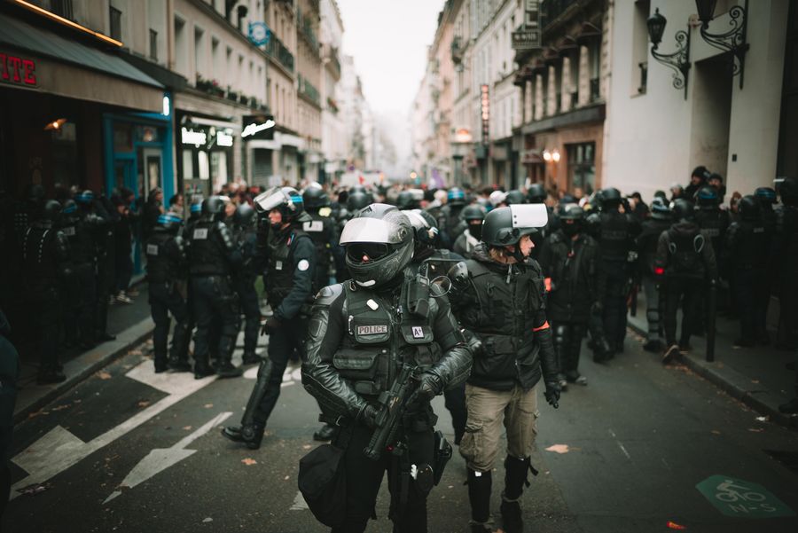Police stand guard during a demonstration in Paris, France. (Photo by Yu Zhou/Xinhua)