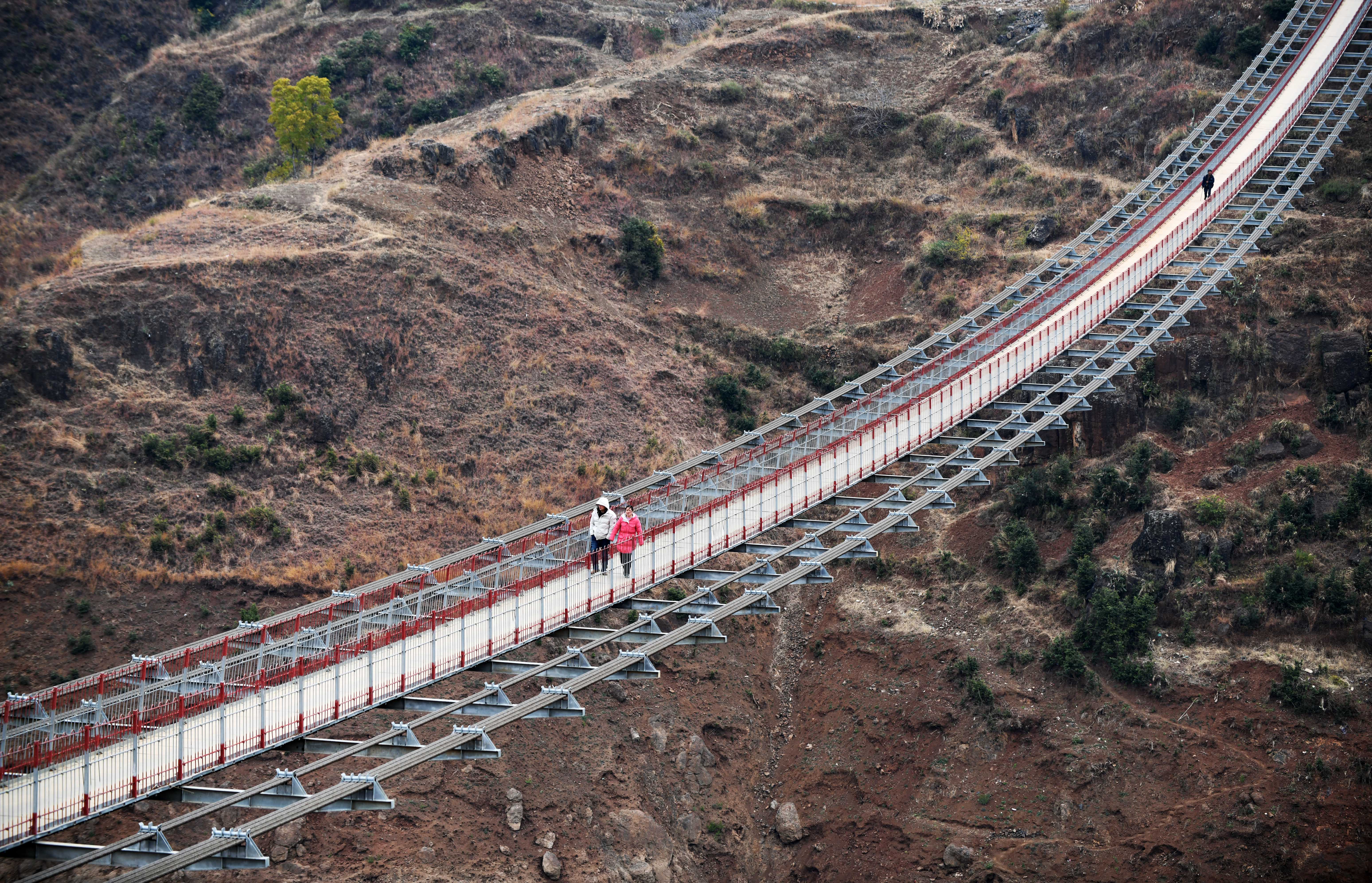 The bridge along Niulan River in southwest China has helped local villagers to cross the river safe and sound instead of taking the unnerving cableway.