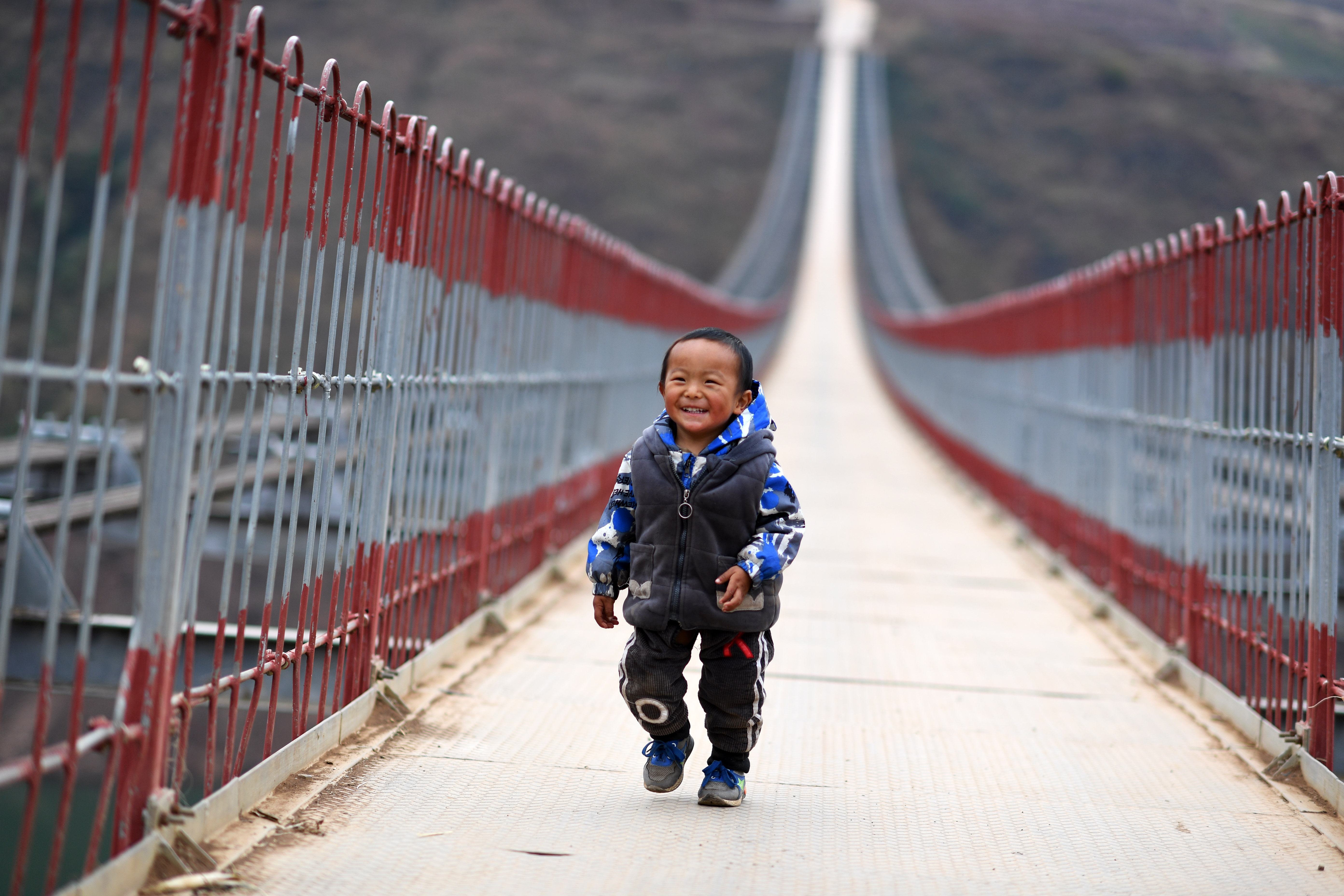 A child walks on a bridge spanning the Niulan River in southwest China on Dec. 11, 2019. (Xinhua/Yang Wenbin)
