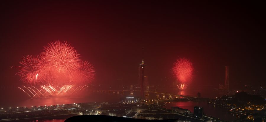 Fireworks explode over the sky in south China's Macao, Dec. 22, 2019. (Xinhua/Cheong Kam Ka)